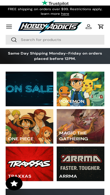 100%Hobby Addicts is a small, independent hobby shop specializing in trading card games, RC cars, and board games. Shop sealed TCGs, singles, and accessories plus RC vehicles, parts, and batteries. Online ordering, fast shipping, and in-store support available.