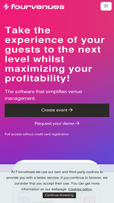 77%We help you with your entry or reservation. Also to apply Fourvenues to your business.