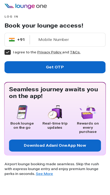 85%Pre book your access to airport lounges online with Lounge One and enjoy exclusive access, in-airport benefits, and services. Lounge One is available in major Indian airports like Mumbai, Ahmedabad, Lucknow, Jaipur, Guwahati, Mangaluru, Thiruvananthapuram, Bangalore, Jammu, Amritsar, Gwalior, Ranchi, Srinagar, Vizag and Nagpur.