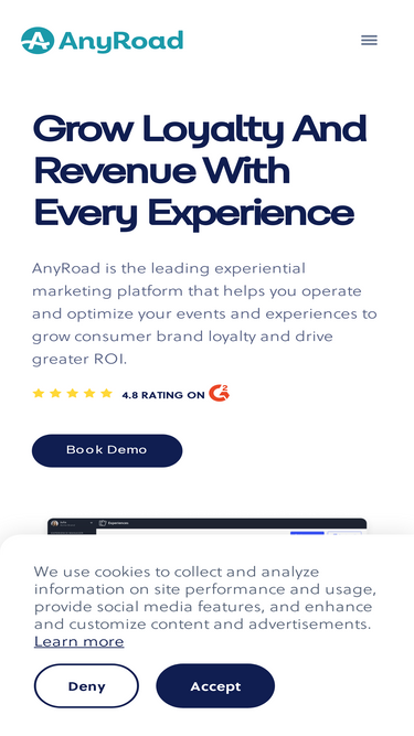 84%This Privacy Policy (the “Privacy Policy”) sets forth AnyRoad’s policy with respect to information including personally identifiable data (“Personal Data”) and other information that is collected from visitors to the Site and users of the Services (the “Visitors”, or individually, “Visitor”, “you”, and/or “your”).