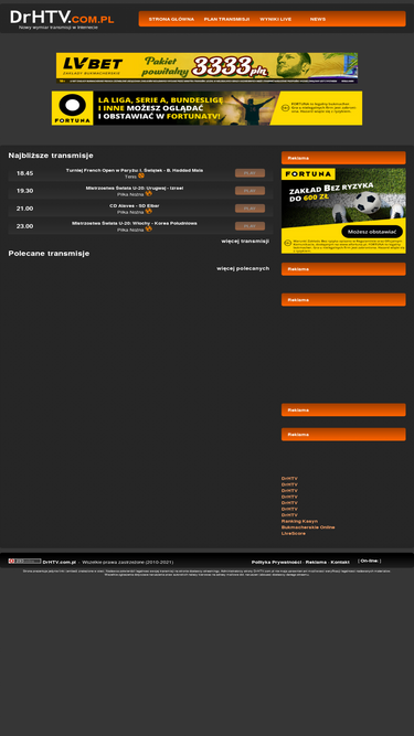 77%transmisje meczów na żywo w internecie! transmisje live z wielu dyscyplin sportowych w najlepszej jakości. to wszystko w drhtv.com.pl!