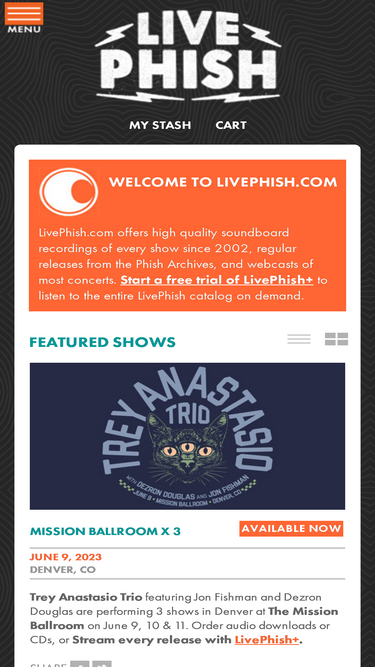 Stream or download Trey Anastasio's Live from The Beacon Theatre, New York, NY Show now! Experience official live concert recordings or download our mobile music app at livephish.com.