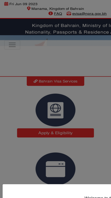 85%this site allows you to apply for short term and long term visas for travel to the kingdom of bahrain. it also gives an overview of application process and requirements.