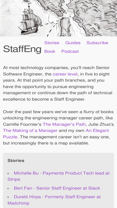 77%This page collects frequently asked questions about becoming and operating as a Staff engineer or Principal engineer. What does a Staff engineer do? What does a Staff engineer work on? A Staff engineer is a senior, individual contributor role in a Software Engineering organization. There is no “one” kind of Staff engineer, and many fall into one of four archetypes: Tech Lead, Architect, Solver, and Right Hand. Ras Kasa Williams’ story does a good job of capturing what a typical Staff engineer might do in a technology company.