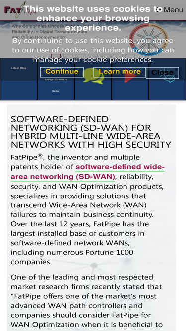 86%fatpipe leads in sd-wan and cloud, offering 99.999988% wan reliability, seamless vpn failover, mpsec security, and advanced network optimization