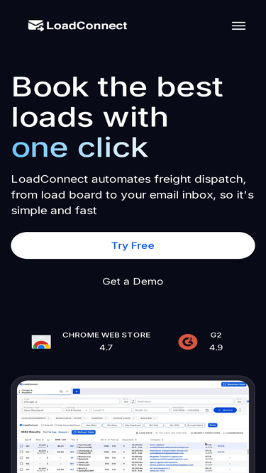82%Boost your dispatch speed with AI powered tools: verify carriers instantly, book loads with one click, automate broker communication, and streamline your entire workflow. LoadConnect brings AI dispatch features to every load board you use.