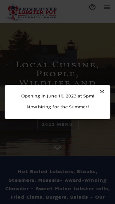 100%welcome to union river lobster pot! we are located at 8 south st, ellsworth, me 04605. our phone number is 207-667-5077. we look forward to seeing you soon!