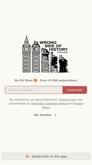 86%It's Ed West's sub stack. Click to read Wrong Side of History, by Ed West, a Substack publication with tens of thousands of subscribers.