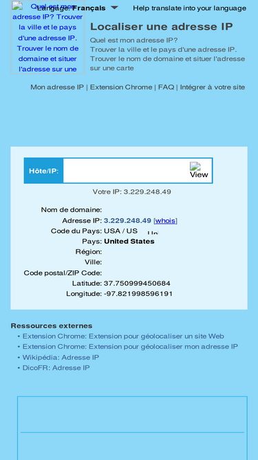 100%quel est mon adresse ip?trouver la ville et le pays d'une adresse ip. trouver le nom de domaine et situer l'adresse sur une carte