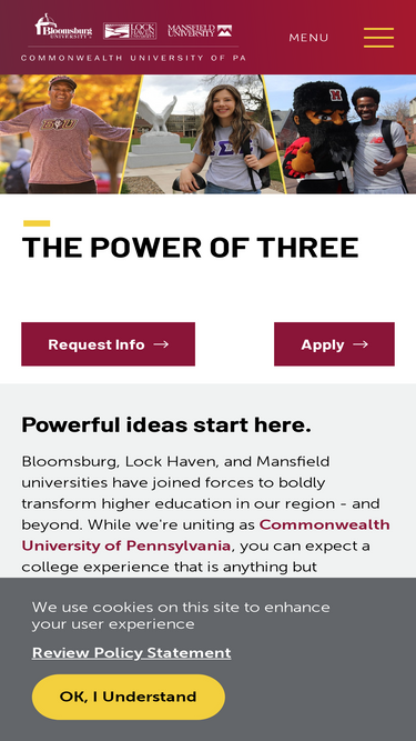 100%Benefit from all the resources of a large, public university and enjoy the campus life of a smaller school. Find the right fit for you across our Bloomsburg, Lock Haven, Mansfield, and Clearfield locations.
