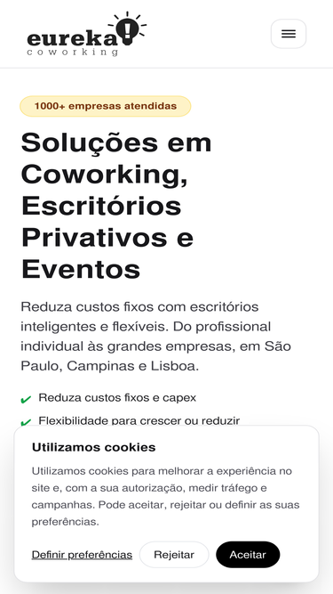 65%Coworking e escritórios privativos prontos na Av. Paulista e Campinas. Contratos flexíveis, tudo incluído e escala rápida.