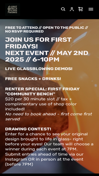 Philadelphia's public access glassblowing studio! Classes, lessons, hotshop rental, private events, custom made glass and repairs.