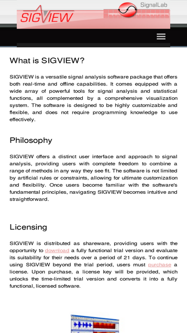 89%discover sigview, the advanced spectral analysis software designed for audio and signal processing. explore comprehensive features that cater to professionals in engineering, science, and audio technology. learn how sigview can help you with real-time analysis, data visualization, and more. ideal for both beginners and advanced users.