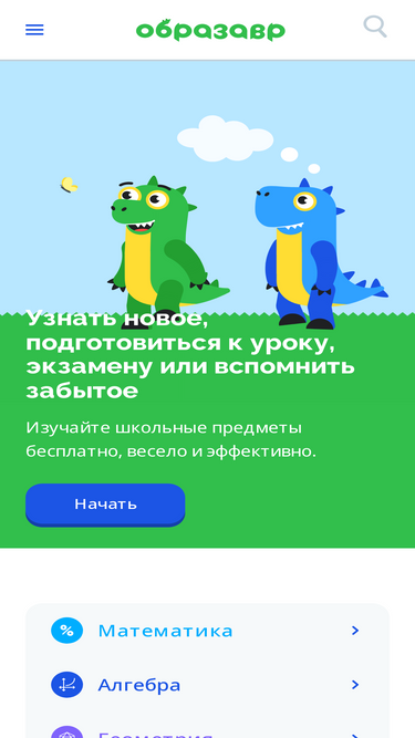 84%Изучайте математику, физику, биологию, историю, русский язык и многое другое, готовьтесь к ЕГЭ и ОГЭ на практике с помощью интерактивных уроков, заданий, тренажёров и карточек.