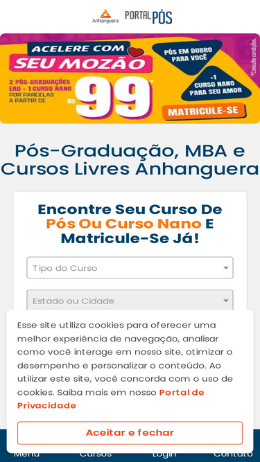 60%2 pós ead pelo preço de 1 só na anhanguera! a partir de r$99. garanta já os seus cursos de pós-graduação e duplique suas conquistas!