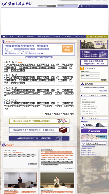 66%明治大学法曹会とは、明治大学、明治大学法科大学院または明治短期大学を卒業または中退した者で、司法試験に合格した者を主たる会員とする団体です。明治大学法曹会の目的は、会員相互の親睦、交流および研鑽を図るとともに、明治大学法科大学院を含む明治大学の法曹教育を賛助することにあります。