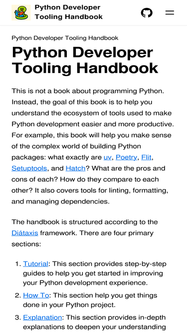 100%👋 hey, i’m tim hopper! i’ve been a professional python developer for over a decade. like many python developers, i’ve faced the many challenges of python packaging and dependency management. i’ve also come to love helping developers find the right tools to make their work easier and more productive. i am currently writing a free ebook on python developer tooling. this isn’t a book about python programming. instead, the goal of this book is to help you understand the ecosystem of tools used to make python development easier and more productive.