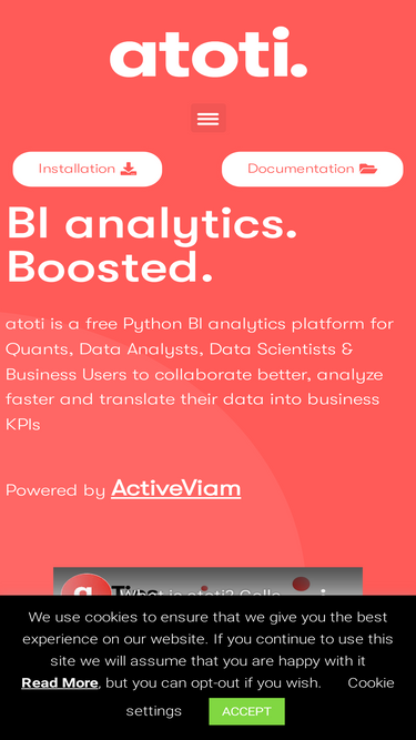 88%Atoti is a Data Analytics platform with a best-in-class calculation engine, a visualization suite and a real time OLAP cube, all rolled into one.