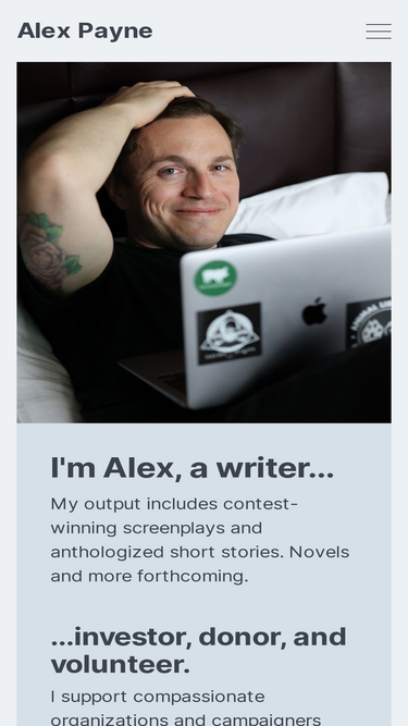 100%Homepage of writer, investor, and erstwhile technologist Alex Payne.