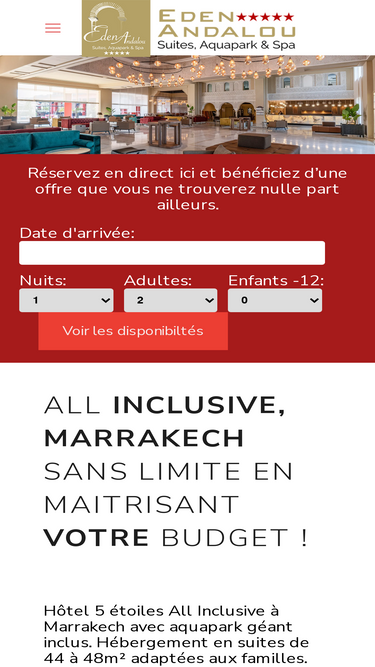 67%Need help, have a question or a request ? JUST DROP US A LINE CHECK AVAILABILITY AND PRICES We're very responsive Contact us Call us (+212) 524 459 400 Message us (+212) 661 337 337 E-mail us resa@edenandalou.com Explore Find us on the map Km 4, Route d'Amizmiz 40000 Marrakech, Maroc Get directions Explore Luxurious