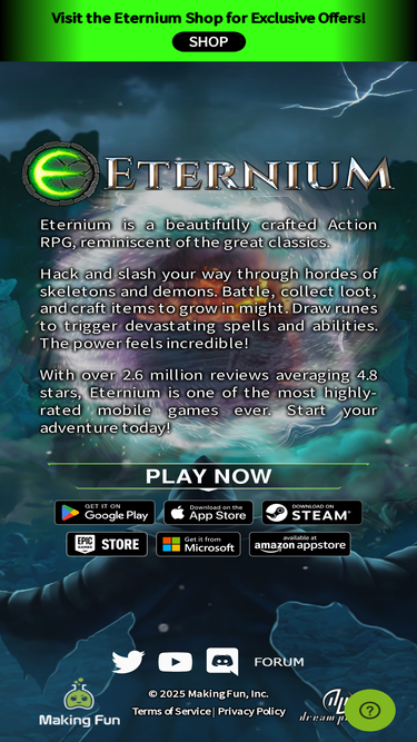 79%Eternium is the first action role-playing game truly designed for mobile devices. Hack and slash your way through hordes of skeletons and demons. Battle, collect loot, and craft items to grow in might. Draw runes to trigger devastating spells and abilities over particularly nasty enemies to unleash your fury. Watch them burn, freeze, or get slashed apart. The power feels awesome!
