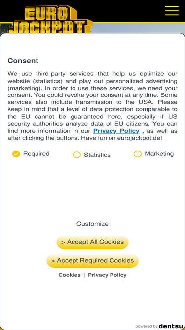 100%du willst wissen wie die aktuellen eurojackpot zahlen lauten? auf der offiziellen webseite von eurojackpot erfährst du alles aus erster hand! aktuelle gewinnzahlen, nächste euro jackpot ziehung, jackpothöhe. jetzt spielen!