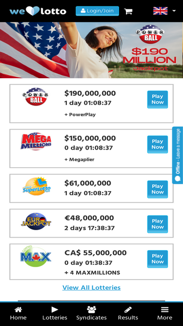 84%Buy entries into the biggest jackpots with Lotto247. Play securely, check results, and subscribe for regular entries to your favourite online lottery games.