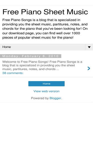 94%Free Piano Songs is a blog that provides you with the popular sheet music, partitures, notes and chords for the piano that you've been looking for!