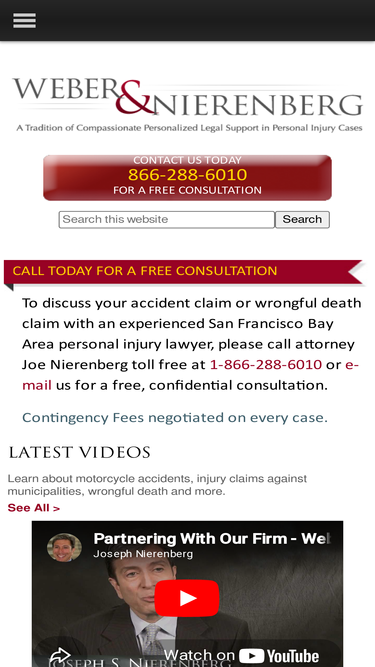 100%speak to an experienced san francisco bay area personal injury lawyer at weber & nierenberg law firm. our san jose wrongful death attorneys can help if you have been injured in an auto accident, motorcycle accident, bicycle accident or pedestrian accident. call us today! 1-866-288-6010