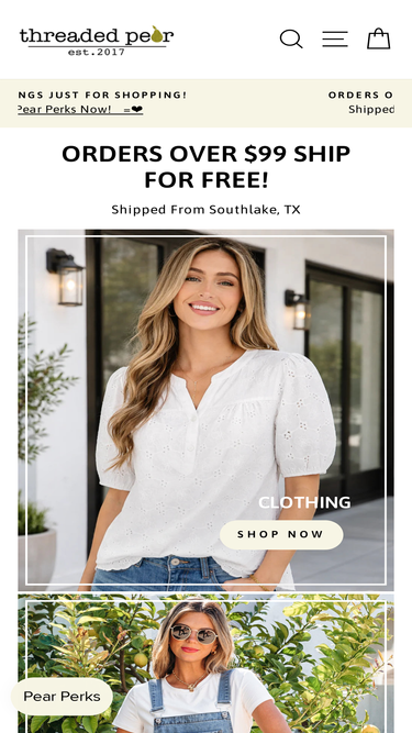 98%Your boutique for shopping women's clothing, bags, shoes, and accessories. Shop Threaded Pear & Find the Latest Trends.