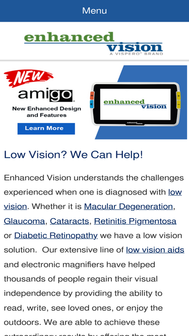 61%enhanced vision is a manufacturer of low vision products to assist with low vision conditions like macular degeneration and other visual impairments.