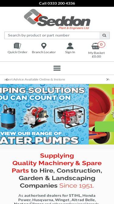 82%seddons plant (est 1951) experts for parts, engines, construction and garden machinery from brands stihl, honda, belle, winget, norton clipper, husqvarna