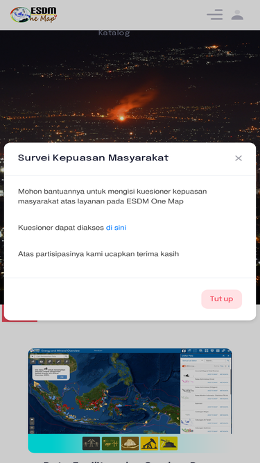 66%esdm one map indonesia merupakan aplikasi sistem informasi berbasis web yang menampilkan berbagai informasi geospasial (peta) tematik sektor energi dan sumber daya mineral secara online (webgis). esdm one map indonesia dirancang untuk mengintegrasikan semua data di sektor energi dan sumber daya mineral,menyusun tata kerja pengelolaan informasi geospasial tematik sektor energi dan sumber daya mineral, serta berkolaborasi dalam manajemen data dengan berbagai pihak.