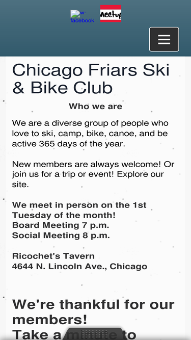 88%Chicago Friars camping, canoeing, biking, hiking trips are detailed here.
