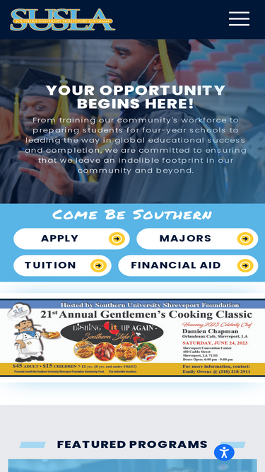 89%southern university at shreveport is a junior college in shreveport, louisiana. it is part of the historically black southern university system. susla, pushed to fruition by the administration of governor john j. mckeithen, opened for instruction on september 19, 1967.