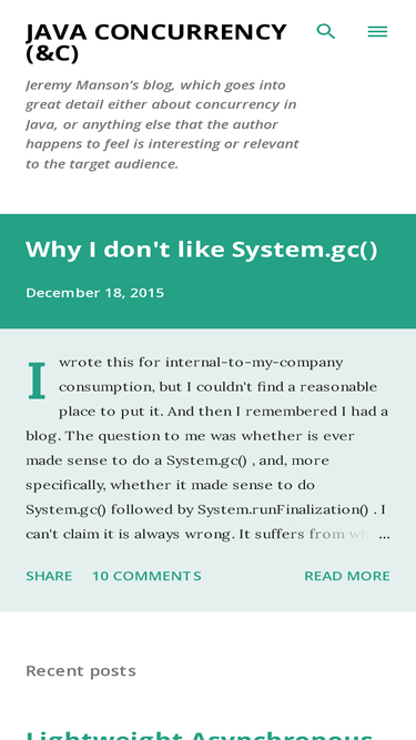 66%Jeremy Manson's blog, which goes into great detail either about concurrency in Java, or anything else that the author happens to feel is interesting or relevant to the target audience.