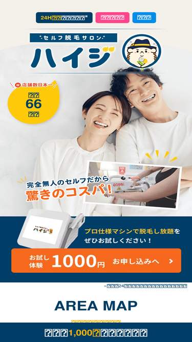 87%セルフ脱毛サロンとは、業務用の脱毛器をお客様が自分(セルフ)で操作して施術する脱毛サロンです。一般的な脱毛サロンは数十万円と高額ですが、セルフ脱毛サロンの場合は最大10分の1程度の価格で利用可能な為お客様から大変ご支持いただけております。