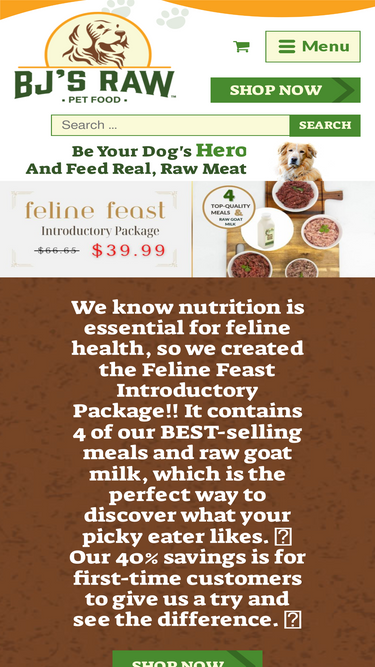 80%Fresh from the farm to your dog's bowl! BJ's Raw Pet Food are traditional farmers bringing whole fresh raw dog foods to your dog.