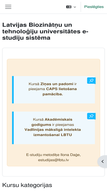 100%latvijas biozinātņu un tehnoloģiju universitātes e-studiju sistēma