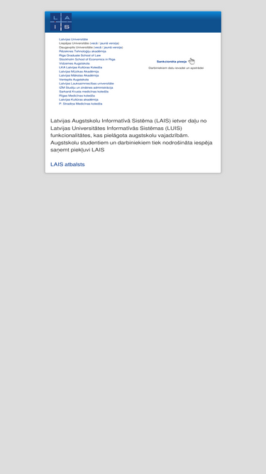 According to Similarweb data of monthly visits, luis.lu.lv’s top competitor in March 2026 is lais.lv. luis.lu.lv 2nd most similar site is estudijas.lbtu.lv, and closing off the top 3 is ebooks.rtu.lv.
