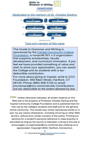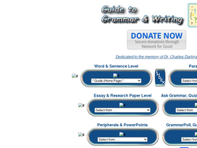 80%the guide to grammar and writing contains scores of digital handouts on grammar and english usage, over 170 computer-graded quizzes, recommendations on writing -- from basic problems in subject-verb agreement and the use of articles to exercises in parallel structures and help with argumentative essays, and a way to submit questions about grammar and writing. javascript and cgi-based quizzes (form enabling required). acrobat reader, sound card, and powerpoint recommended but not required.