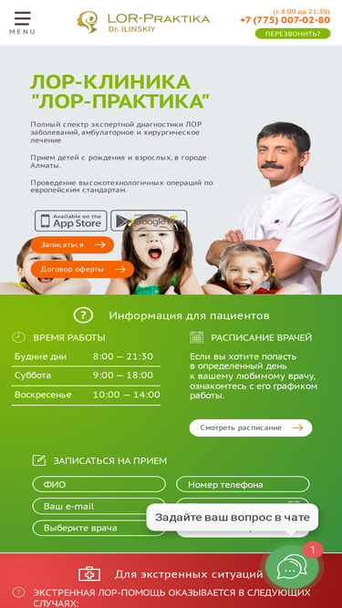 95%отоларингологи (лор-врачи) алматы. диагностика и лечение болезней уха, горла, носа у взрослых и детей. записаться на приём к лору можно онлайн на сайте или по телефону +7 (775) 007-02-80