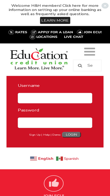 87%We are pleased to welcome the members of H&H Federal Credit Union to the ECU family. Education Credit Union and H&H Federal Credit Union have combined efforts, talents, and visions to serve an even greater portion of our beloved Panhandle than either of us could accomplish alone,