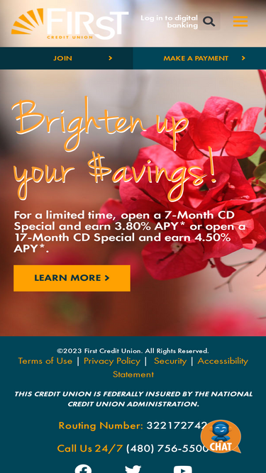 79%First Credit Union is not-for-profit. We’re owned by our members, not shareholders. First Credit Union was established in Arizona in 1929.