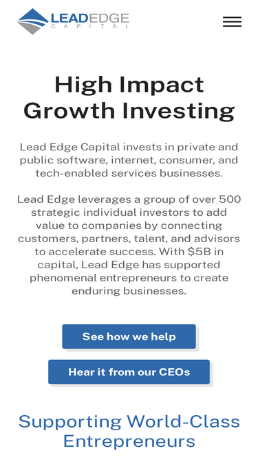 80%Lead Edge Capital is a growth equity firm with substantial assets in software, internet, and tech-enabled businesses, backed by a network of 700+ investors.