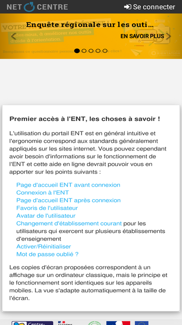 89%instance neto'centre, cher cartable numérique, collèges euréliens, mon e-collège indre, touraine e-school, collèges 41, mon e-collège loirétain by gip-recia de uportal by apereo: portail ent pour les lycéens en région centre-val de loire et les collégiens des départements du cher, de l'eure-et-loir, de l'indre, de l'indre-et-loire, du loir-et-cher et du loiret