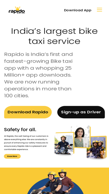 62%Rapido, with Bike-Taxis, Autos & Cabs is revolutionising the way India travels. With a presence in 150+ cities and over 100 million safe rides completed, Rapido is becoming India’s go-to app for comfortable and affordable rides.
