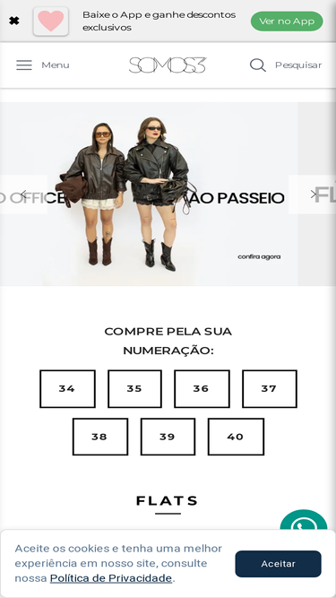 92%Vem Conferir os Calçados da Somos Três! Compre Calçados com preços imperdíveis com até 40% de desconto, pague em até 6x s/ juros ou no boleto/pix com 5% Off + Frete Grátis a partir de R$ 399,00 para Sul e Sudeste ou Frete Fixo de R$9,90 para Sul e Sudeste.