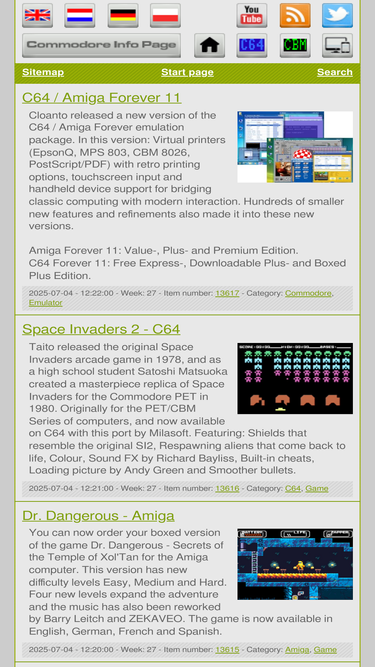 100%this is the commodore news page. on this web page you can find the latest news about the computer brand commodore. there is news about the first generation (cbm/pet) the vic-20, c64 and c128. and also news about the c16, c116, plus/4, c64 dtv, c-one and the amiga. more about magazines, competitions, music, emulators and events. look every week for the latest news. page: 1