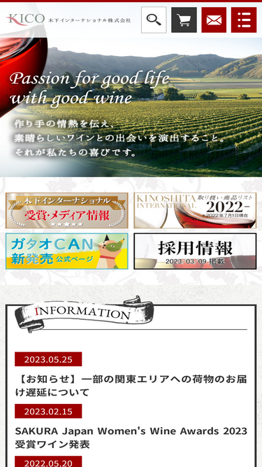 100%木下インターナショナル株式会社[kico]は、世界30社から200種以上のワインの輸入販売をしています。シャトー酒折とヴィニョス・バーベイト社の2つのメーカーをグループ内に持つインポーターです。